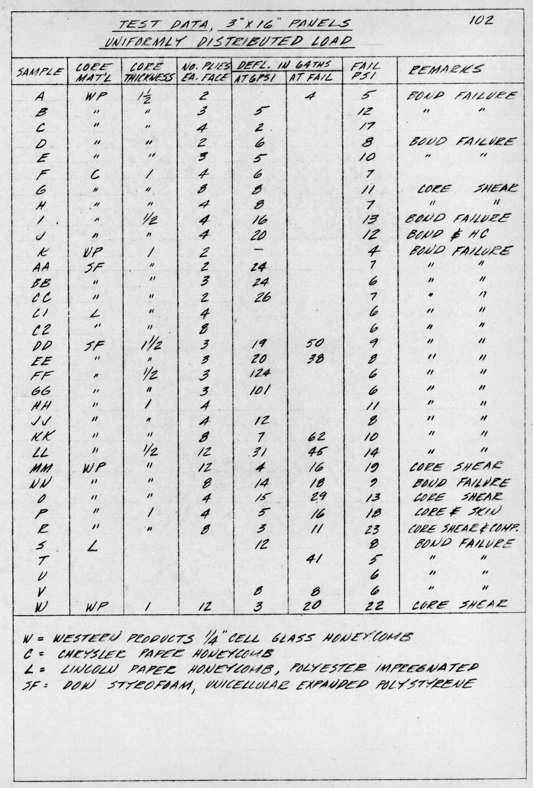 Comparison of 9"x60" Panels Various Honeycomb Arrangements 1-18-54