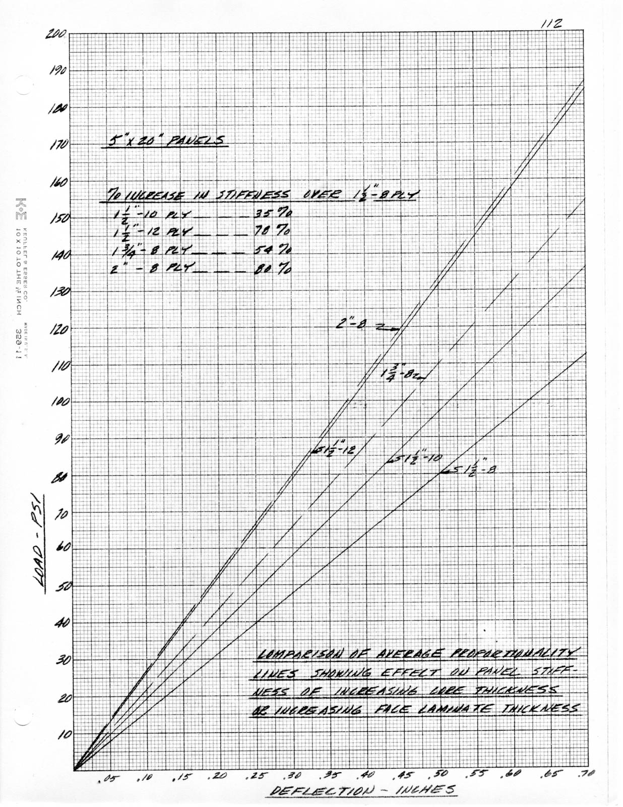 Comparison of Average Proportionality Lines Showing Effect on Panel Stiffness of Increasing Core Thickness