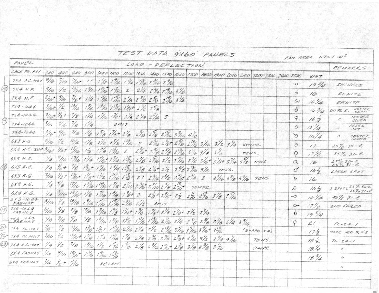 Comparison of 9"x60" Panels with Various Bonding Systems 12-29-53