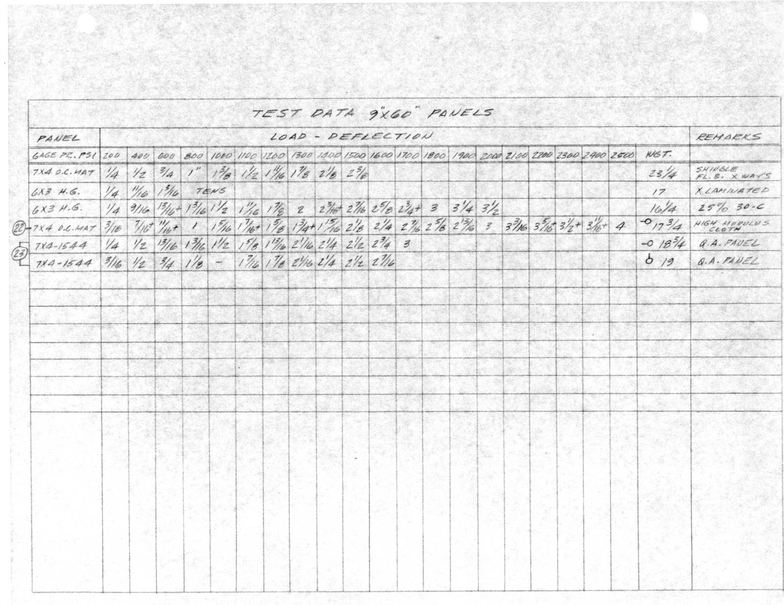 Comparison of 9"x60" Panels 2 Quality Assurance Panels Compared with Typical Earlier Panels 5-15-56
